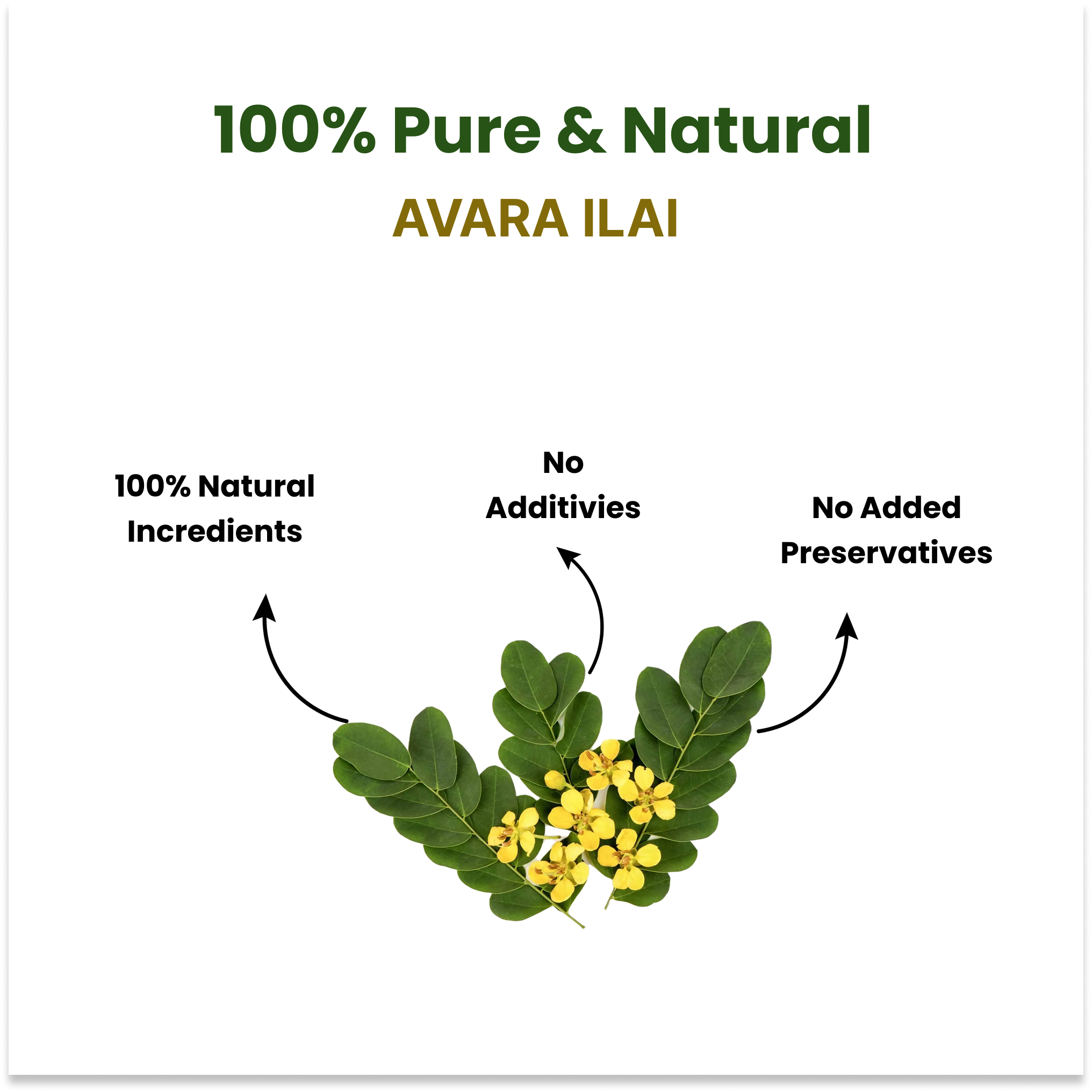 Aavara Ilai Powder, made from the leaves of the Aavaram plant (Senna Auriculata), is well known in traditional medicine for its ability to cool the body, purify the blood, and manage diabetes. It is commonly used to treat skin problems, urinary infections, and body heat. This herbal powder is usually mixed with warm water and taken once a day, or used as a paste on the skin to treat rashes and pimples. Regular use helps improve skin glow, maintain sugar levels, and support overall health naturally.