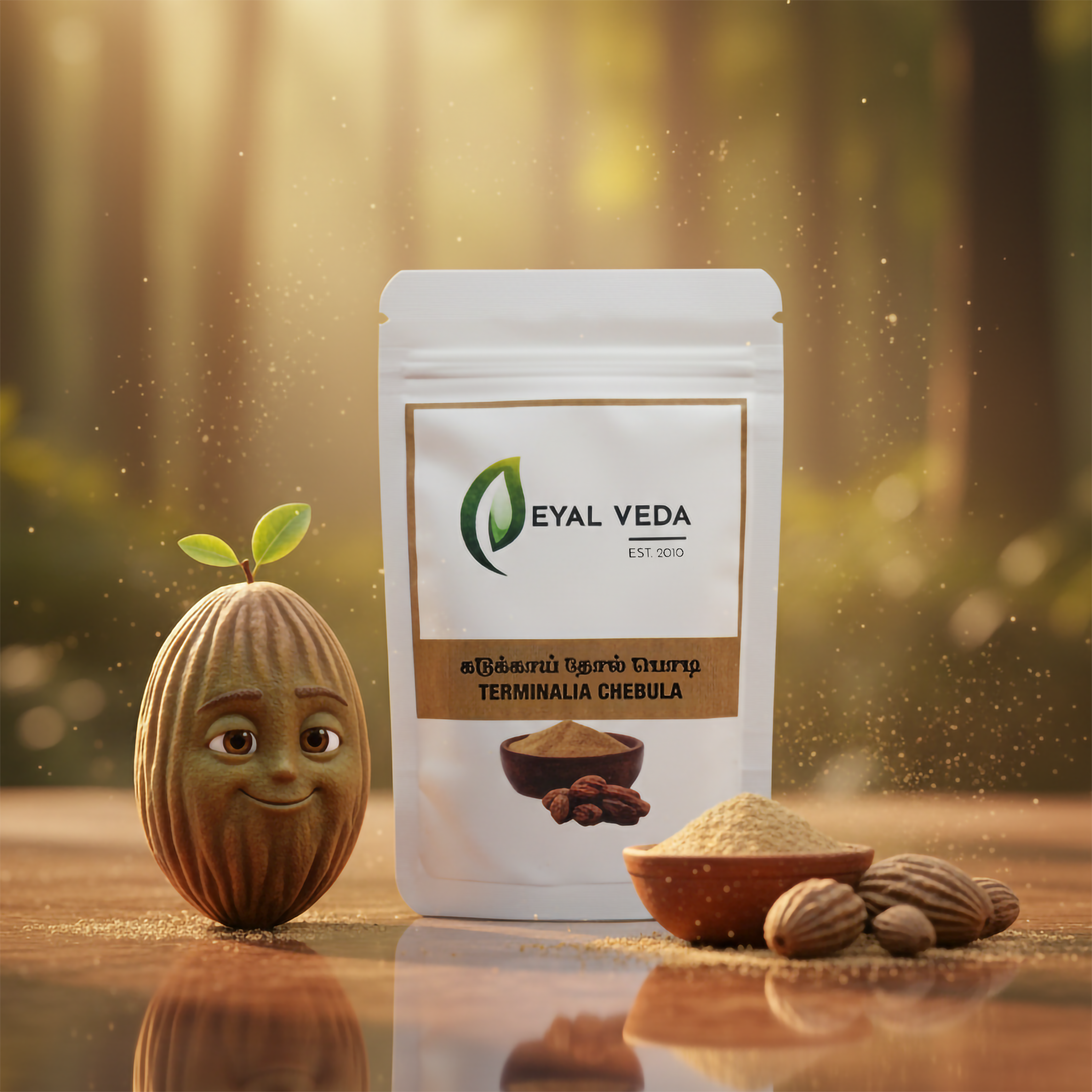 Kadukkai Thol Podi is a powder made from the dried bark of the kadukkai (haritaki) tree. It is known for its powerful cleansing properties and helps improve digestion by removing toxins from the body. This powder is good for boosting immunity and fighting infections because of its natural antibacterial effects. It also supports healthy skin by reducing acne and inflammation. Using Kadukkai Thol Podi regularly can help keep the body clean, healthy, and strong.
